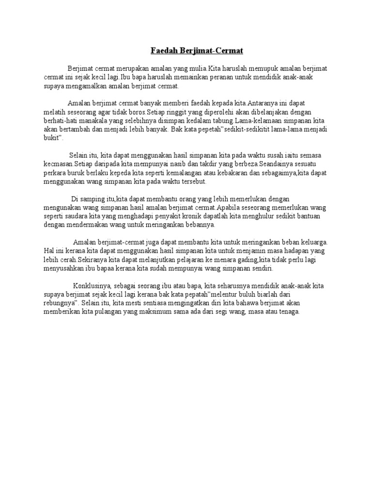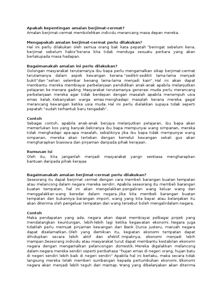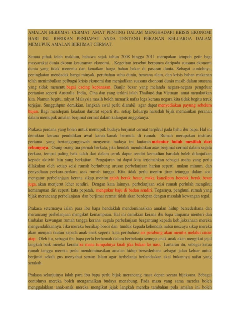 Amalan Berjimat Cermat Amat Penting Dalam Menghadapi Krisis Ekonomi Hari Ini Pdf