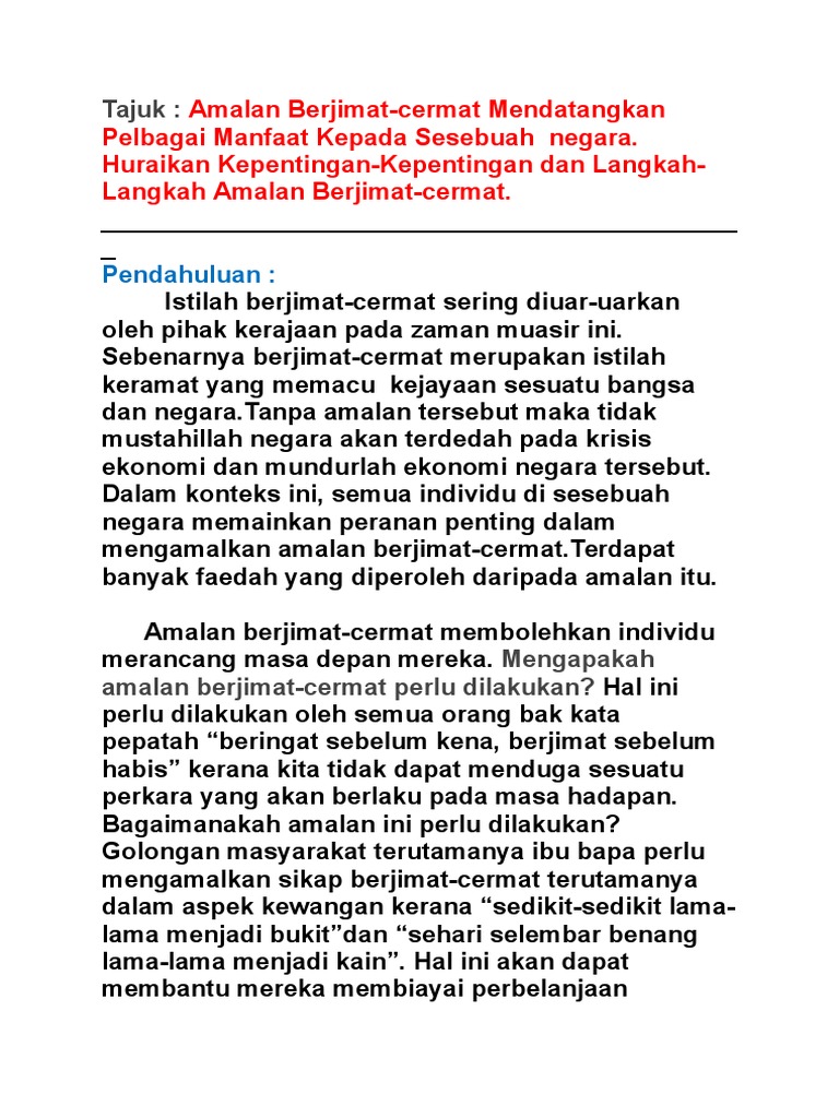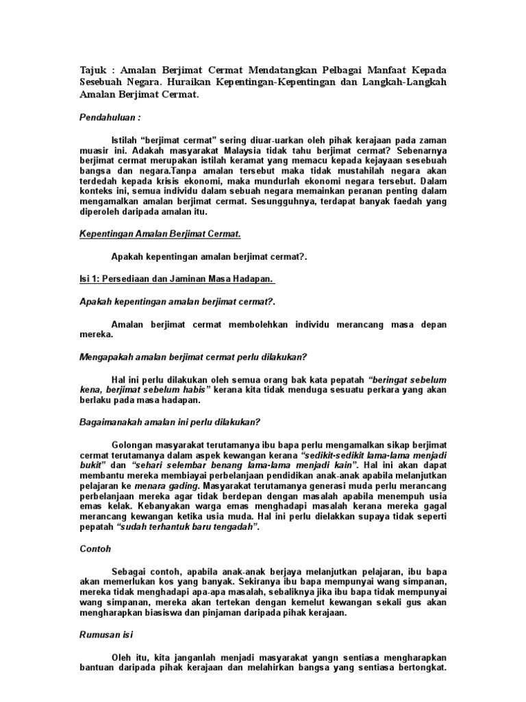 Pendahuluan jenis tajuk berita 9. Situasi yang berlaku ini telah memberi pengajaran kepada negara dan rakyatnya tentang kepentingan amalan berjimat cermat dalam. Syed Sobrie guna duit ASB Jamal berjimat cermat.